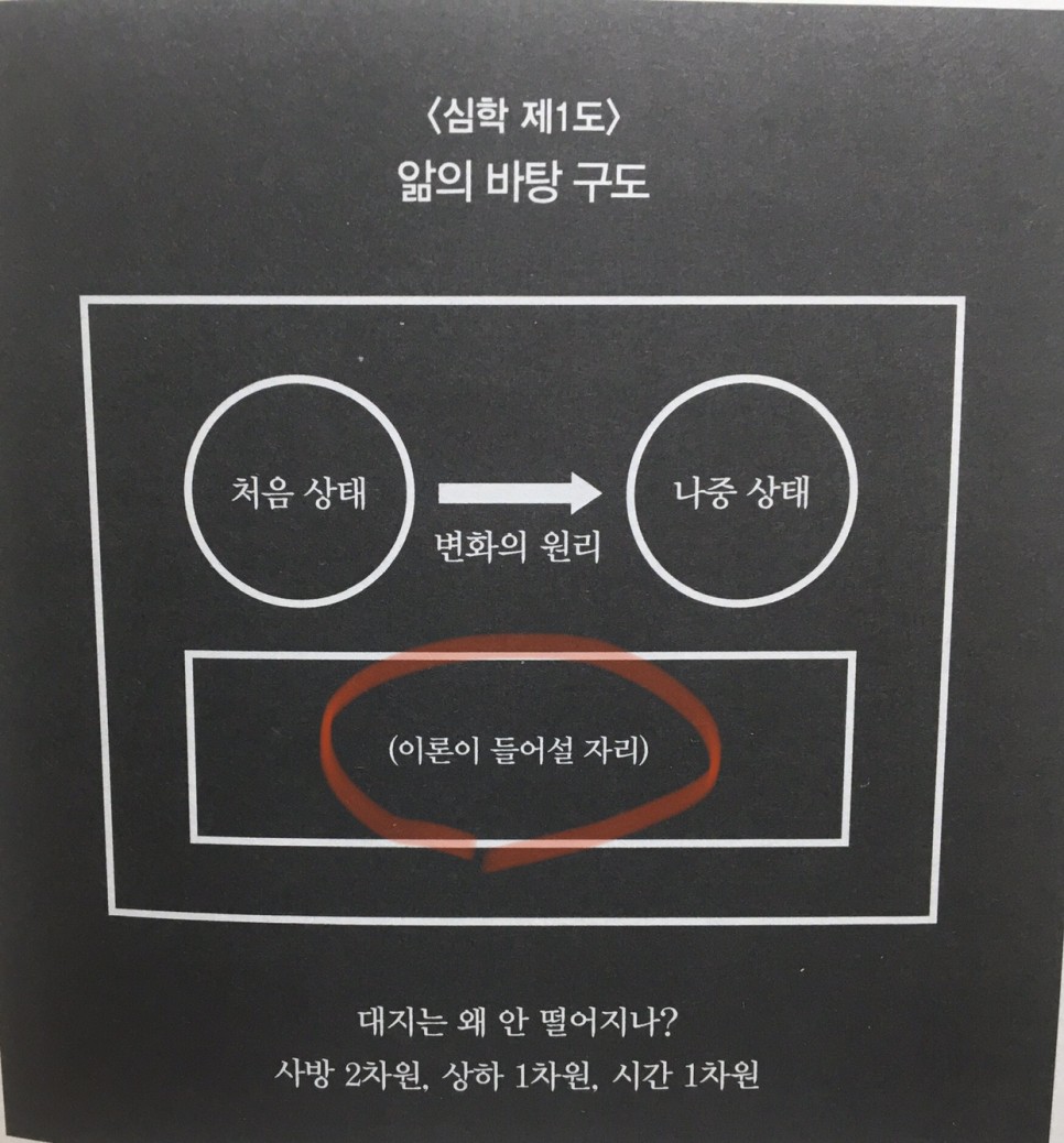 ① 위 '앎의 바탕 구도' 사진에 있는 '이론이 들어설 자리'에 어떤 변화의 원리로써 이론이 채워져나갈 것인지 기대하며 읽어도 좋을 것이다.