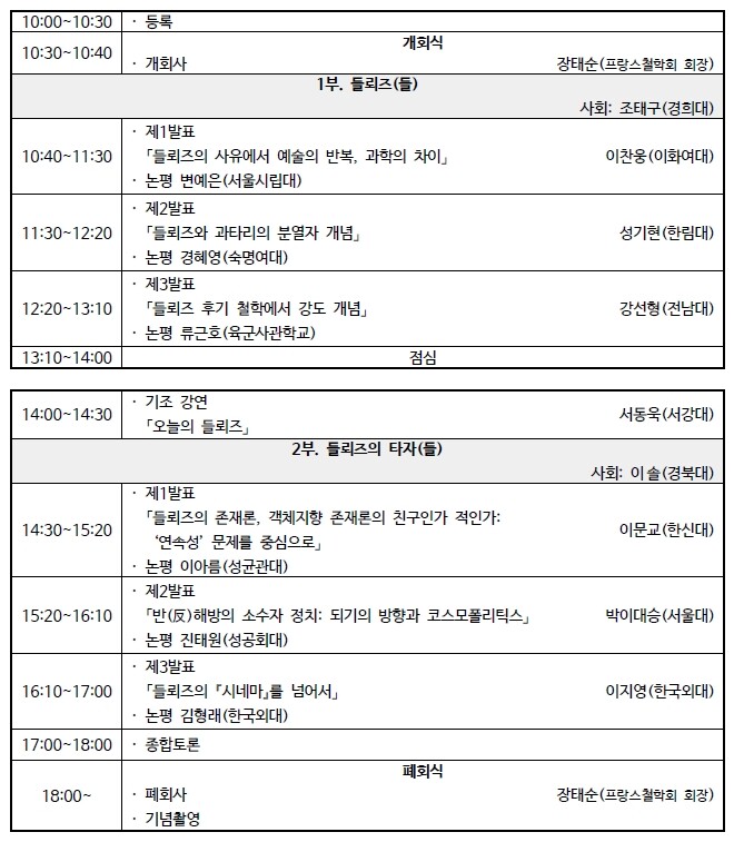 [한국프랑스철학회 들뢰즈 탄생 100주년 기념 학술대회]
