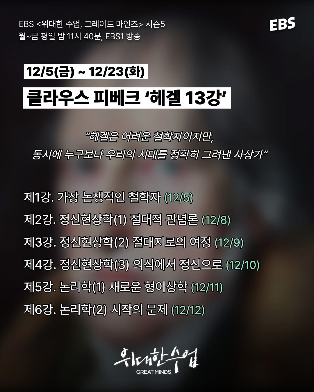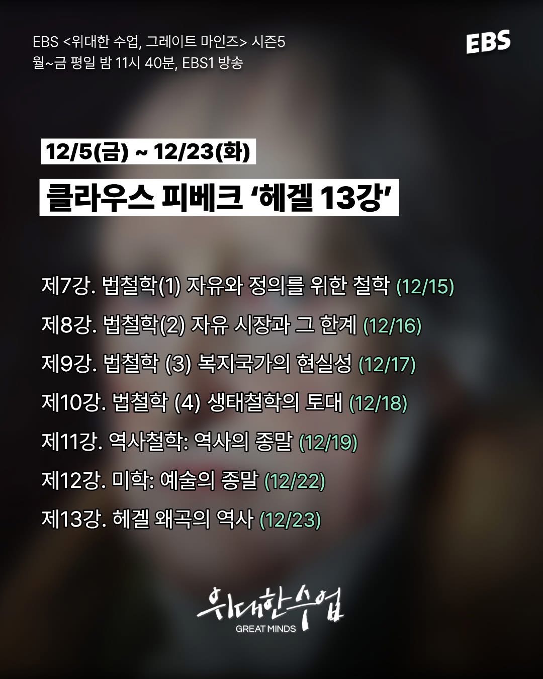 쭉 들어보면 좋을 것 같은데 EBS에서 해외 접속은 막아놨군요...