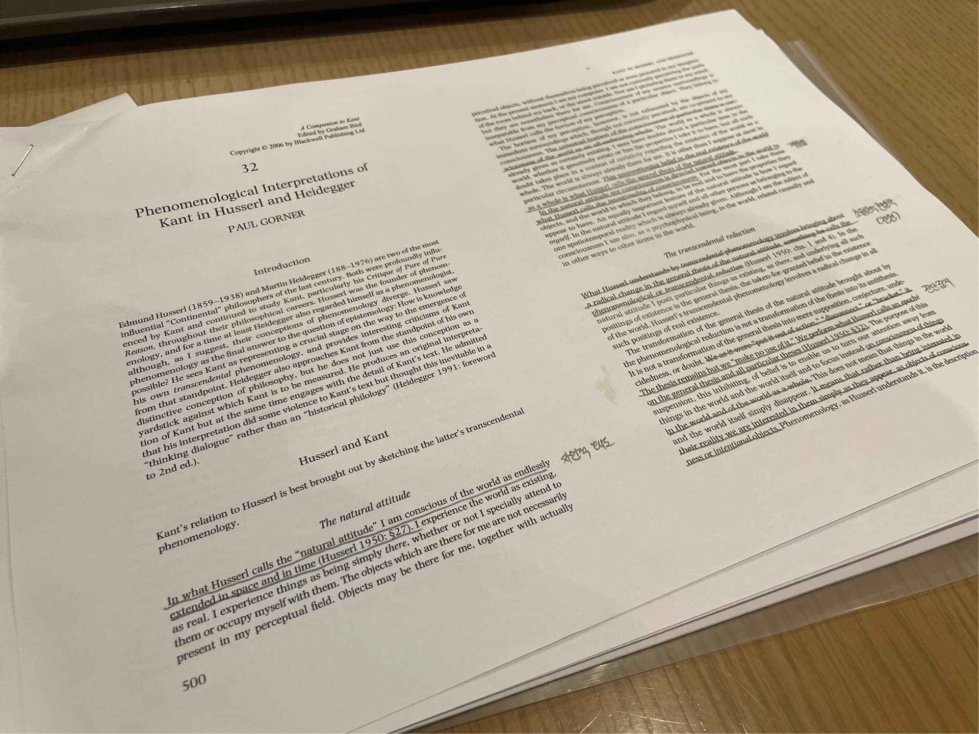 다만, 완전히 만족스러운 글이라고 하기는 어렵습니다. (a) 글이 칸트, 후설, 하이데거의 사유에 대한 교과서적 소개 위주로 되어 있어서 '창의적'이거나 '비판적' 측면은 거의 없다시피 하고, (b) 전기 하이데거의 칸트 해석에만 초점을 맞춘 나머지 후기 하이데거의 칸트 해석은 고려되어 있지 않고, (c) 후설에 비해 하이데거의 칸트 해석 부분은 지나치게 『칸트와 형이상학의 문제』의 책 구성과 내용을 따라가는 것 같다는 인상을 받았습니다. (솔직히, 제가 이 논문의 심사자였으면 '수정 후 게재'를 줬을 것 같네요. 논문이 뚜렷한 결론 없이 "후설은 칸트를 이렇게 해석했고, 하이데거는 칸트를 이렇게 해석했다."로만 끝나서요. 아무리 A Companion to Kant에 수록된 글이라고는 하지만, 아무 결론이 없다 보니 글을 쓰다만 느낌이 납니다.)