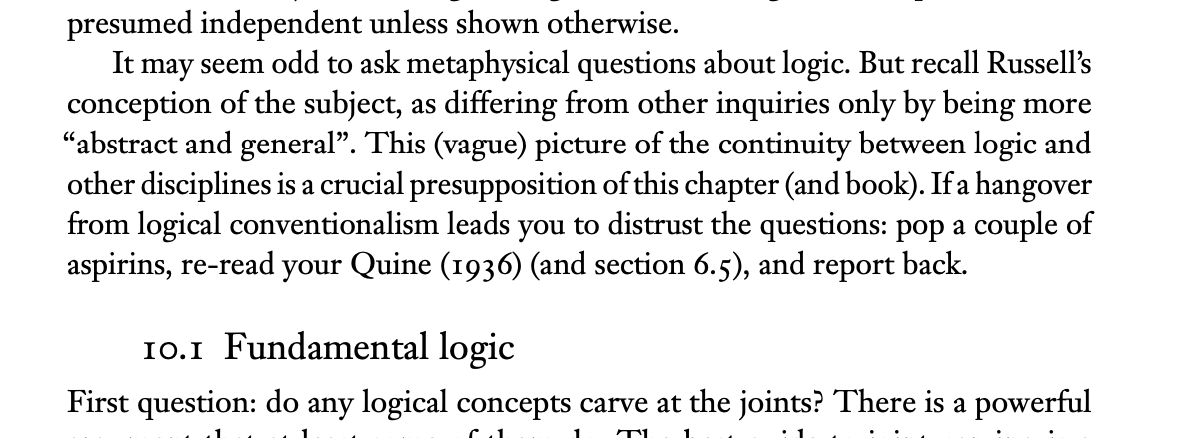 철학을 하다보면 (특히 분석 철학) 드립들이 많이 나오는 것 같습니다. 제 기억에 유난히 남는 두 개들을 올려봅니다. 첫번째는 Sider - Tools for Metaphysics 발췌고, 두번째는 Merricks - Objects and Persons 발췌입니다.