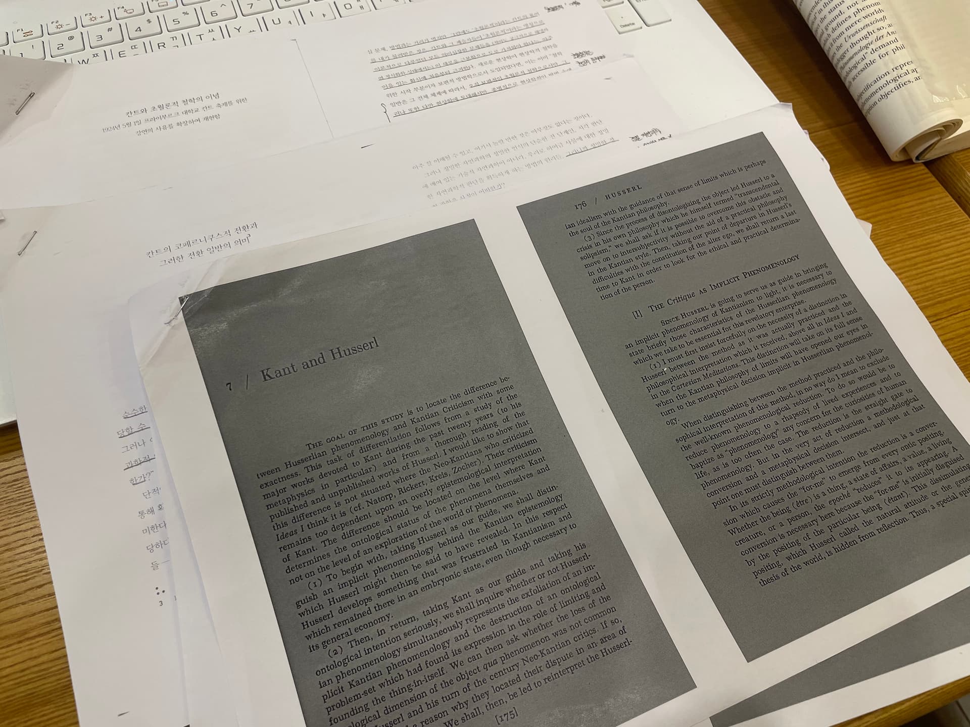 물론, 칸트는 '현상학'이라는 용어를 거의 사용하지도 않았죠. 더군다나, 칸트는 자신의 작업을 일종의 '연역 논증'이라는 추론적 방법으로 표현하려 하였다는 점에서 기술적 방법을 지향하는 현상학과는 다소 거리가 있기도 하고요. (실제로, 리쾨르의 논문 자체도 후설과 칸트의 '차이'를 좀 더 강조하고 있기는 합니다.) 그렇지만 적어도 칸트가 자신의 탐구에서 이후에 현상학의 중요한 모티브가 되는 '판단중지'와 같은 사유들을 미리 선취하고 있다는 점은 분명해 보여요. 특별히, 후설 자신이 「칸트의 코페르니쿠스적 전환과 그러한 전환 일반의 의미」나 「칸트와 초월론적 철학의 이념」 같은 논문에서 칸트를 현상학의 선구자로 인정하고 있을 뿐만 아니라, 하이데거도 『칸트의 『순수이성비판』에 대한 현상학적 해석』이나 『칸트와 형이상학의 문제』에서 칸트의 작업을 '현상학'으로 이해해 볼 수 있다고 강조한다는 점에서도, 칸트의 작업은 '판단중지' 이후에 대상이 우리에게 주어지는 방식에 대한 일종의 (원초적 형태의) '현상학적 기술'이라고 말할 수 있을 것 같고요.