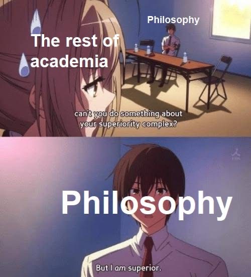 나머지 학계: 너의 우월감 좀 어떻게 할 순 없니? 철학: 하지만 난 우월하잖아.